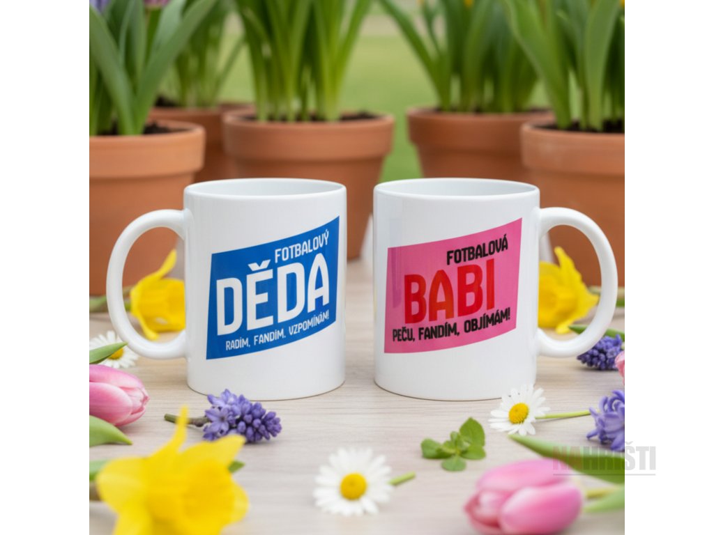 Sada dvou hrnků pro ty nejvěrnější fanoušky u lajny! Pro dědu, co vždycky dobře poradí, i pro babičku, která má v kapse sladkou odměnu. Ideální dárek pro fotbalové prarodiče, kteří fandí srdcem. ⚽❤️