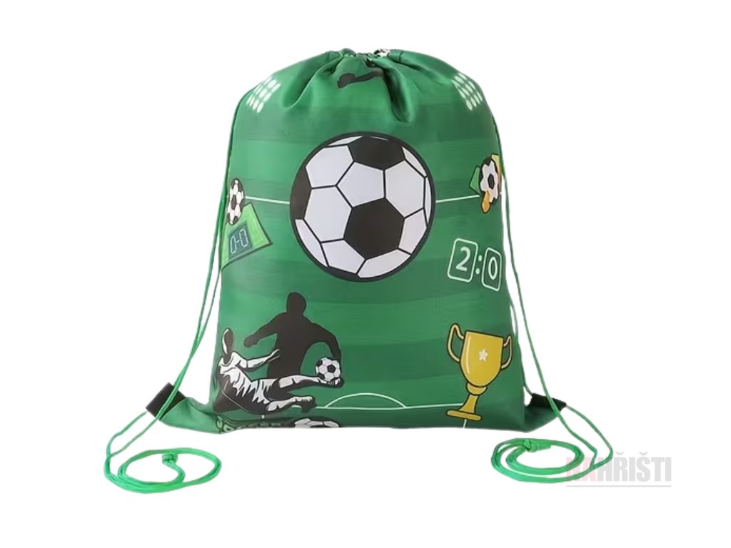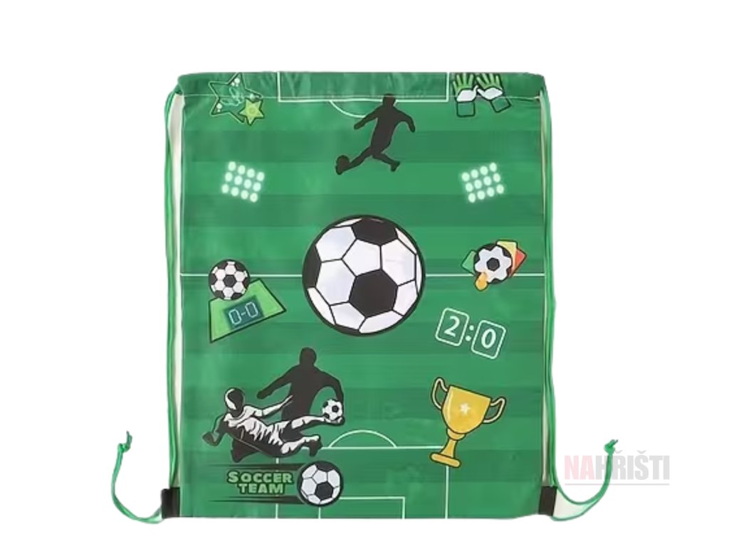 Lehký a praktický vak na kopačky a sportovní výbavu. Design s motivem zeleného hřiště, ideální na trénink, zápas i turnaj.