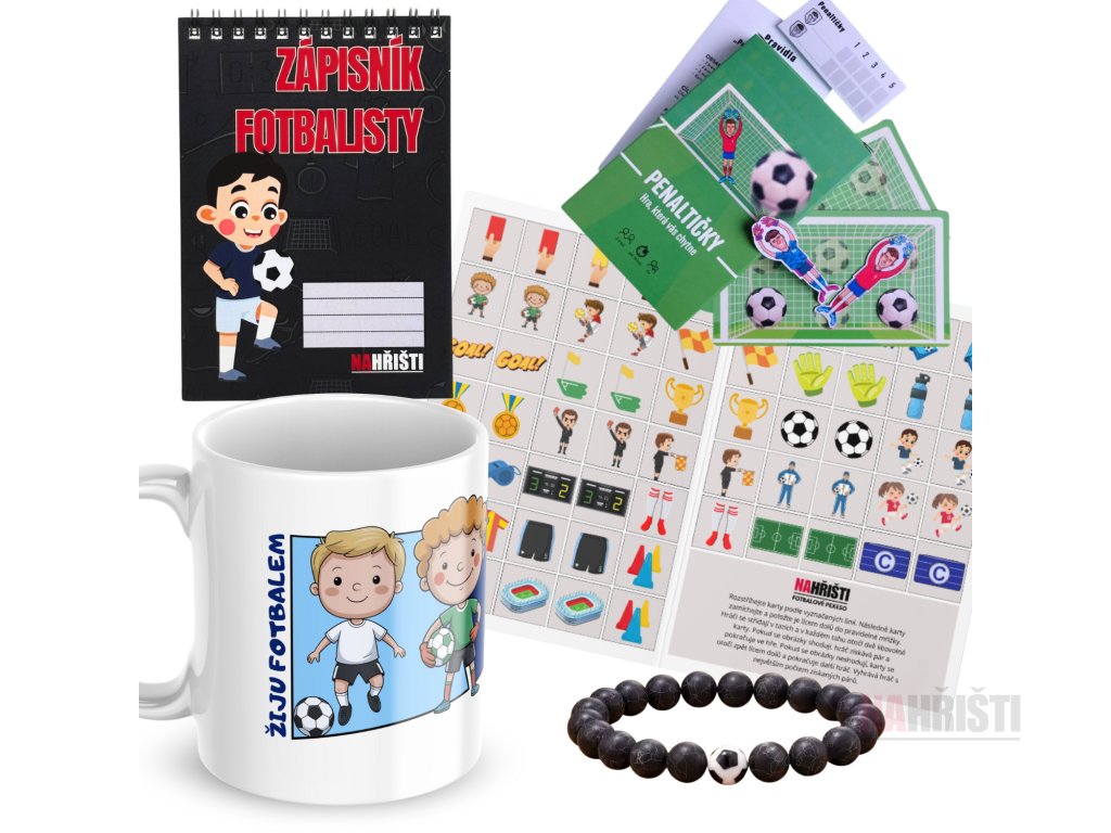 Perfektní dárkový box pro malé fanoušky, kteří prožívají každý zápas u televize! Tento set je navržený tak, aby vyplnil poločasovou pauzu i čekání na další gól. Obsahuje oblíbenou hru Penaltičky, stylový hrnek pro fanoušky, zápisník na skóre a taktické poznámky, pexeso a fotbalový náramek. Ideální dárek pro všechny, kteří fotbalem žijí 24/7!