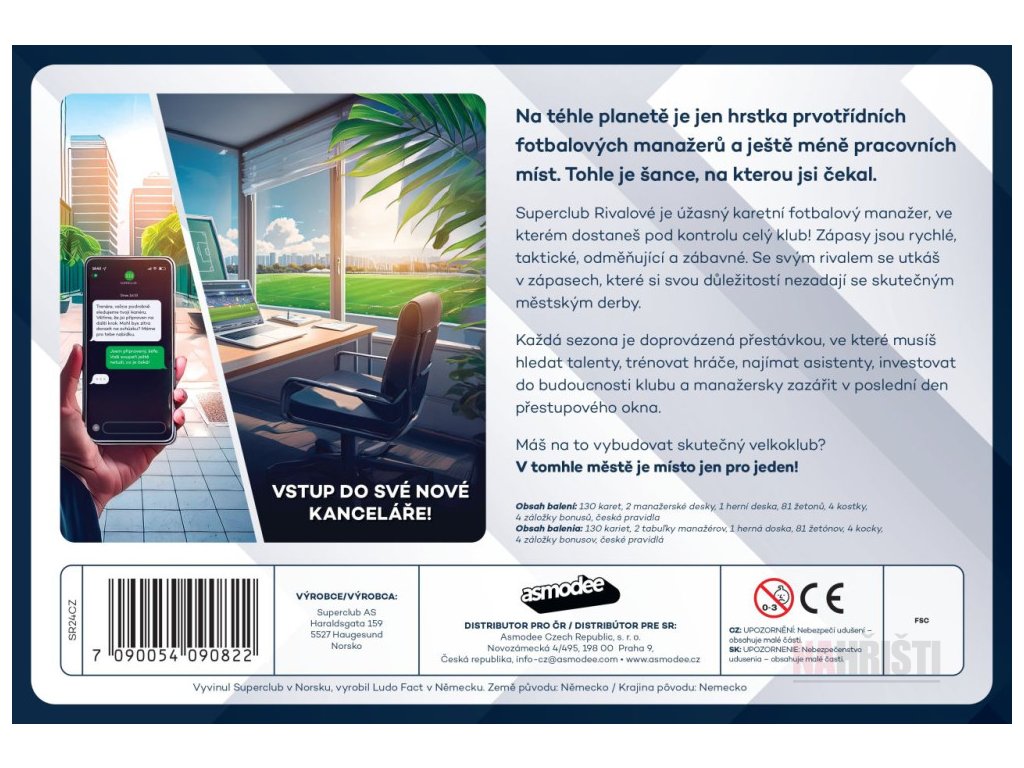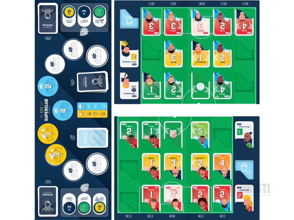 Superclub Rivalové je rychlá a taktická karetní hra pro dva fotbalové manažery. Budujte svůj klub, bojujte v napínavých derby, přestupujte hráče a taktizujte, abyste porazili svého rivala. S herní dobou kolem 30 minut a detailními kartami si užijete napínavé zápasy plné nečekaných zvratů. Ideální dárek pro všechny fanoušky fotbalu a strategických her.